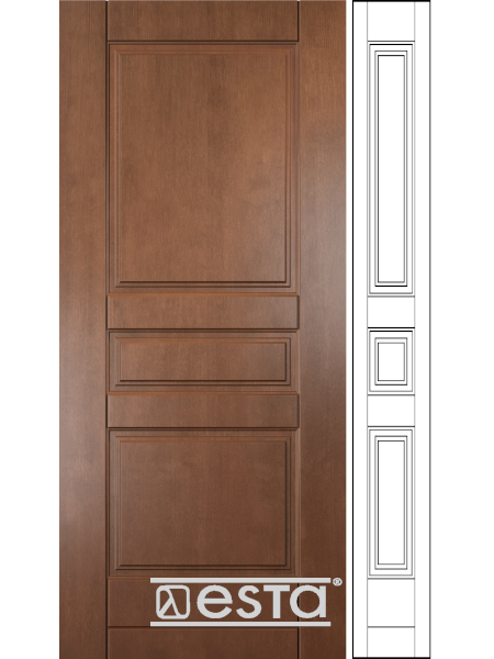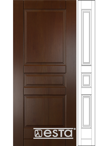 Панель C-007 для входной двери Esta как нельзя лучше отвечает веяниям современной моды. Использование новых технологий обработки материала позволило создать полотно, отличающееся изяществом и красивым видом. На панели для стальных дверей Esta игра света и тени отображается в легких отблесках и природных расцветках.