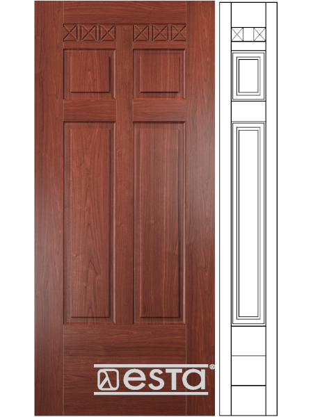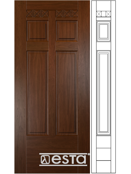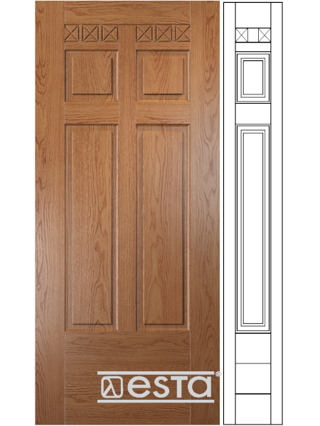 Двустворчатая панель C-108 из массива может быть не только строгой в своем виде. Легкие узоры, подобные кружеву, обрамляют внешнюю сторону этой двери, которая играючи приглашает вас взглянуть, что за ней скрывается. Угловатые формы декора отлично дополняют маленький элемент необычности внешнего вида этой панели.