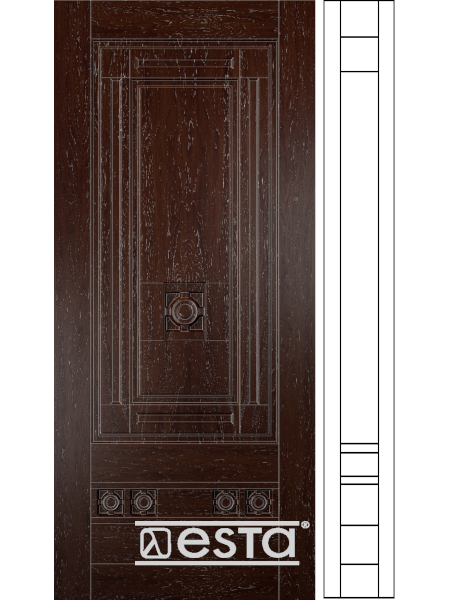 Используя панель Опера для двустворчатых стальных дверей Esta, ваше жилье наполнится мелодией и гармонией великих артистов прошлых столетий. Сложные элементы и конструкции на панели лишь дополняют величественный облик двери вашего дома, а каждый прохожий обратит внимание на нее.