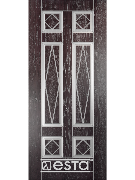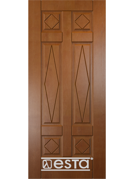 При одном взгляде на панель C-104 для входной двери Esta возникают ассоциации с признанной классикой, аристократией и респектабельностью. Этому способствует цвет ценной породы красного дерева. Материал отлично сочетается с геометрическими узорами, состоящими из прямоугольных форм и ромбов.