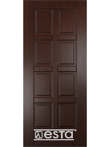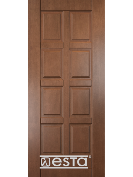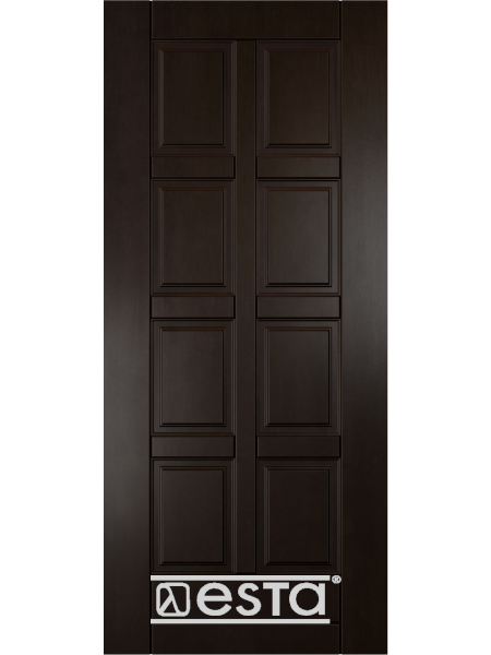 Лаконичный дизайн, состоящий и строгих прямоугольных вставок, наилучшим образом раскрывается в коньячном цвете или в оттенке венге. Тёмное дерево подчёркивает глубину идеально прямых линий, внушая ощущение солидности и массивности всей композиции. Панель C-203 для входной двери Esta добавляет именно такие нотки в интерьер.