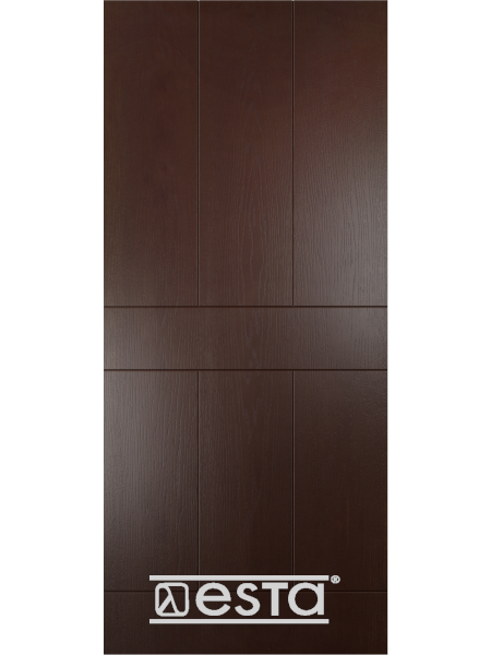 Интересное художественное решение панели для стальных дверей Esta дает возможность использовать ее в оформлении зданий с внешней отделкой сайдингом, имитацией бруса или другими материалами, образующими строгий рисунок. Отлично выглядит панель М 006 для входной двери Esta на кирпичных и клинкерных фасадах.